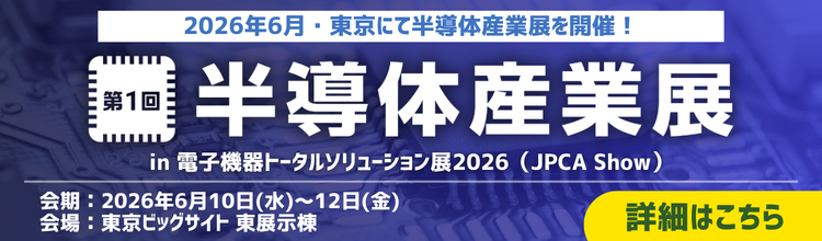 2025.10.222026年6月10日(水)~12日(金)に東京ビッグサイトで開催される「電子機器トータルソリューション展2026」内で、『第1回 半導体産業展』の開催が決定しました! 現在、出展社を募集しています。 【詳しくはこちら】